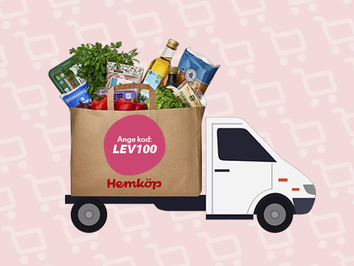 Få 100 kr rabatt på 4 köp över 1200 kr. Gäller när du handlar online med hemleverans från Hemköp Örebro Svampen t.o.m 31/5 2026.