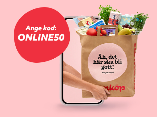 Handla enkelt mat online från Hemköp.se. Vi har öppet dygnet runt och erbjuder upphämtning i butik eller hemleverans på utvalda orter. Handlar du för över 2000 kr får du dessutom fri hemleverans! På vår e-handel har vi ett brett sortiment och på färskvaror gäller vår färskvarugaranti som ger dig pengarna tillbaka om du inte är nöjd med varan.
